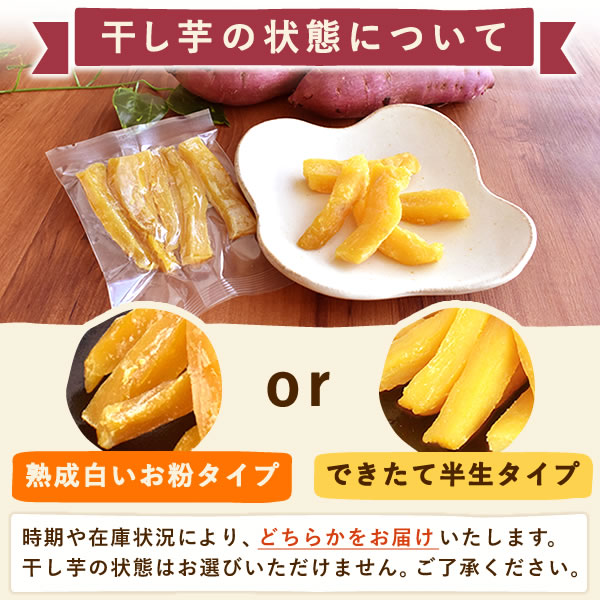 ほしいもは添加物を一切使用せずに、サツマイモ本来の甘さ、柔らかさを引き出して製造する自然商品です。お買い求めいただき、味に若干のばらつきがある場合がございます。何卒、ご理解の程お願い申し上げます。