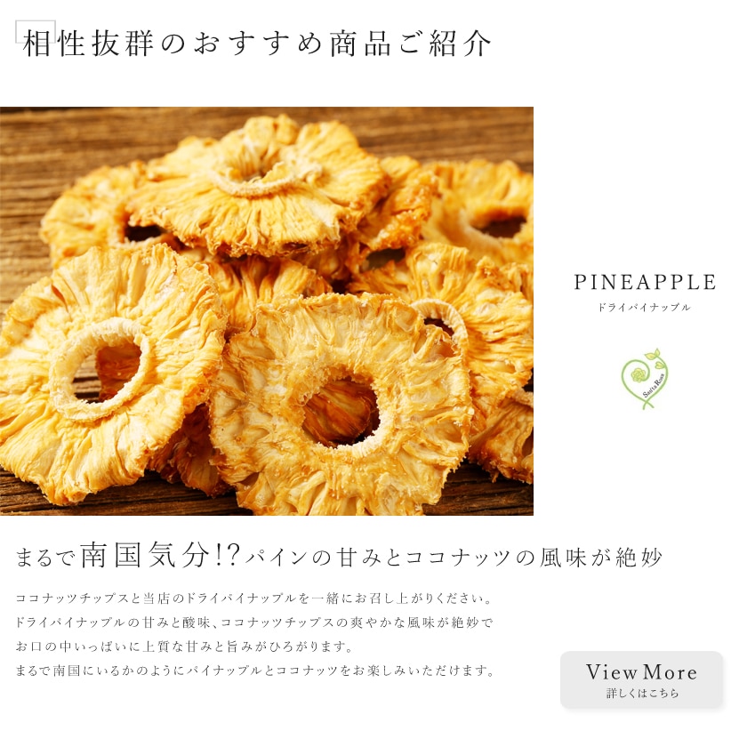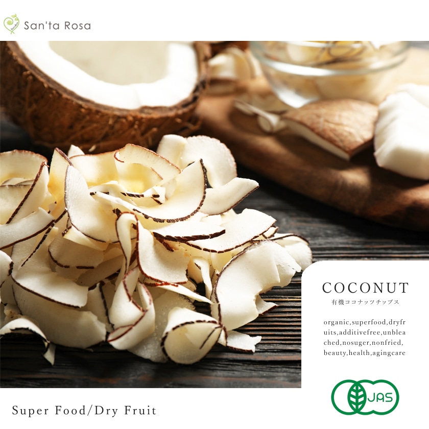 当店のココナッツチップスは、有機で保存料不使用・無添加のものです。そのまま食べても美味しいですが、トロピカルなドライフルーツと一緒に食べたり、アイスクリームやお菓子作りのトッピングとして加えたりと幅広くご利用いただけます。
