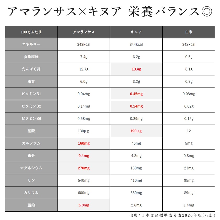 アマランサスと一緒に使うと、より栄養バランスが高まります!
