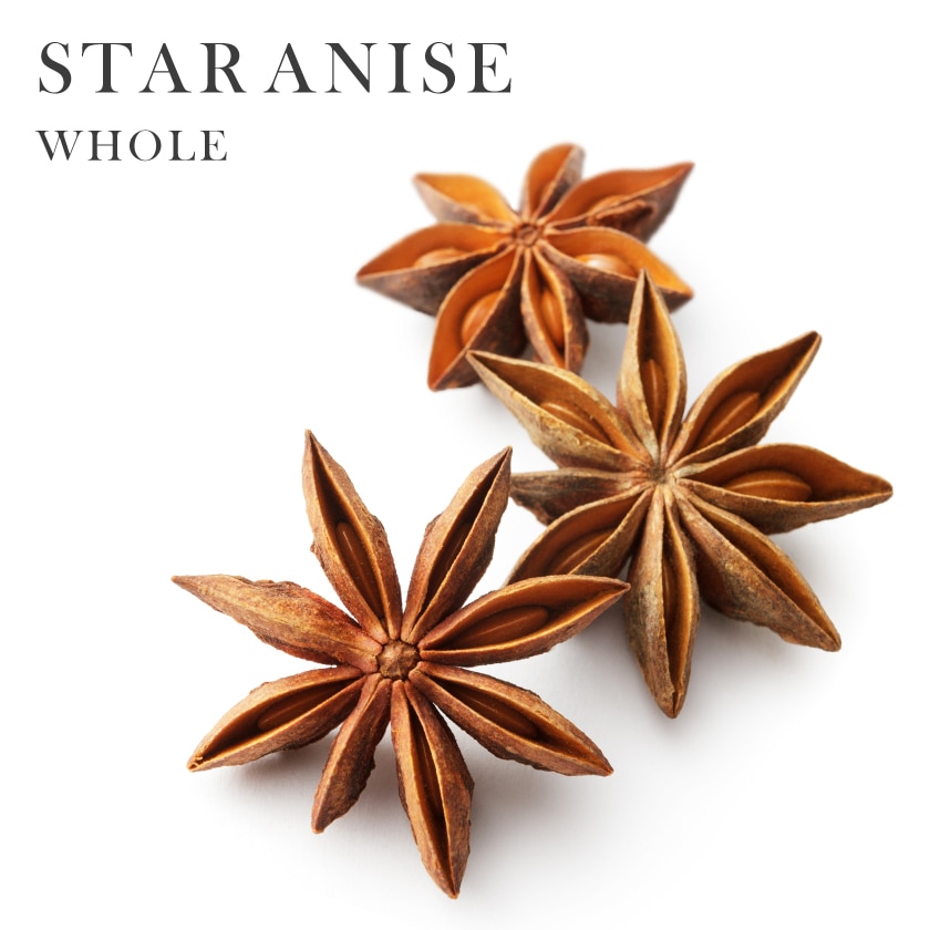 スターアニスは、少量で甘くスパイシーな香りが加わるので、さまざまな料理やデザートに少しずつ加えて、ユニークな風味を楽しんでみてください。