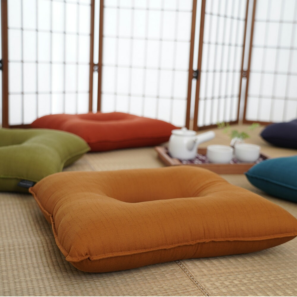 一般的に、円型のものが多い円座クッションですが、「ふとん屋さんの円座クッション」は四角い設計となっております。