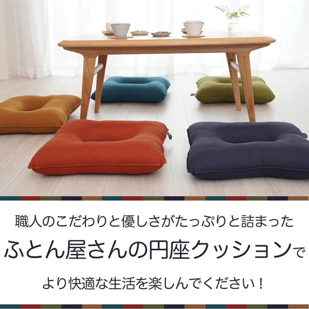 昭和8年から続くふとん屋さんの職人が作る「ふとん屋さんの円座クッション」。和室洋室どちらにも馴染みやすい、和モダンなおしゃれな風合い。ひとつひとつ職人の手作りでお届けします。