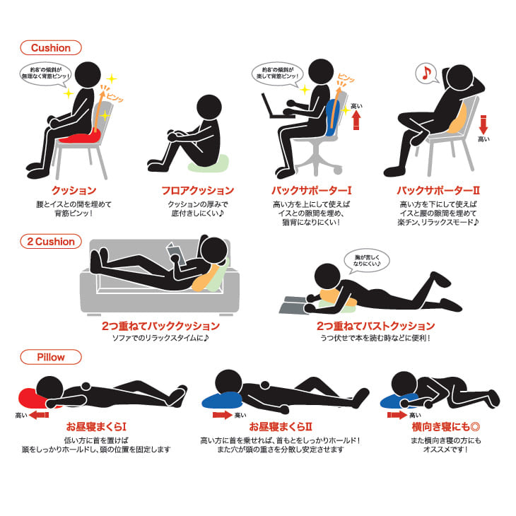 穴の位置をズラしたホールクッションは厚みの変化で腰やおしりに優しくフィット!