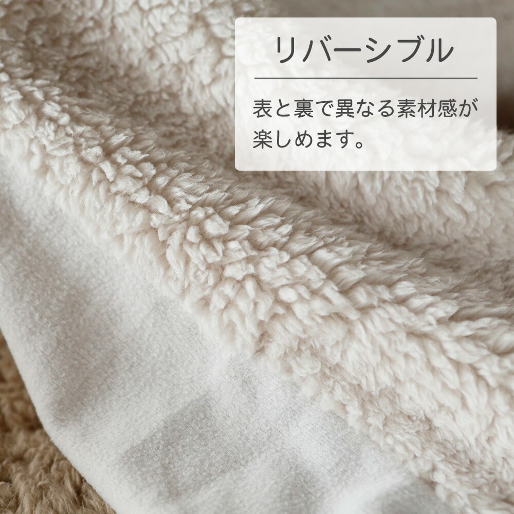 布団カバーとして、ブランケットとして、2WAYで使える肌寒い季節には布団を入れず、そのまま毛布としてお使いください。寒い季節は、ボアとフリースの毛布で羽毛布団を挟んで暖かい空気を布団の中にキープ!
