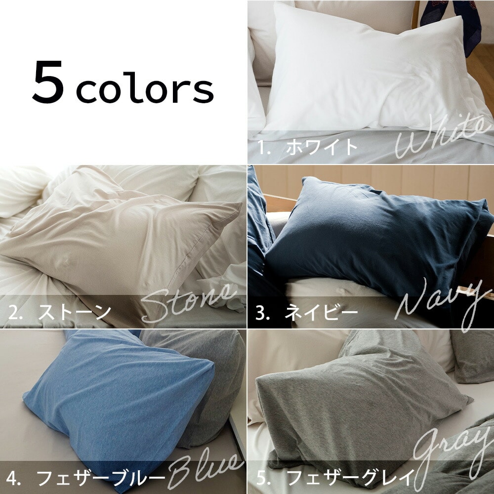 「ホワイト」「ストーン」「ネイビー」「フェザーブルー」「フェザーグレイ」のシンプルで合わせやすい無地カラーのラインナップ。