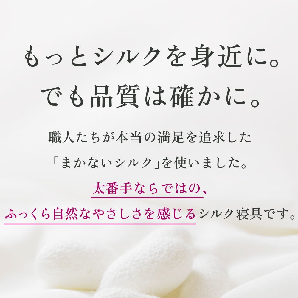 触れたときにやさしく、しっとりとした肌触りで、吸放湿性にも優れムレ感のない快適さで一年中使えるシルク寝具にするため、 素材のよさはそのままに、耐洗濯性と、より優れた通気性という機能性をプラスした、暮らしにフィットしやすい高級シルク寝具です。