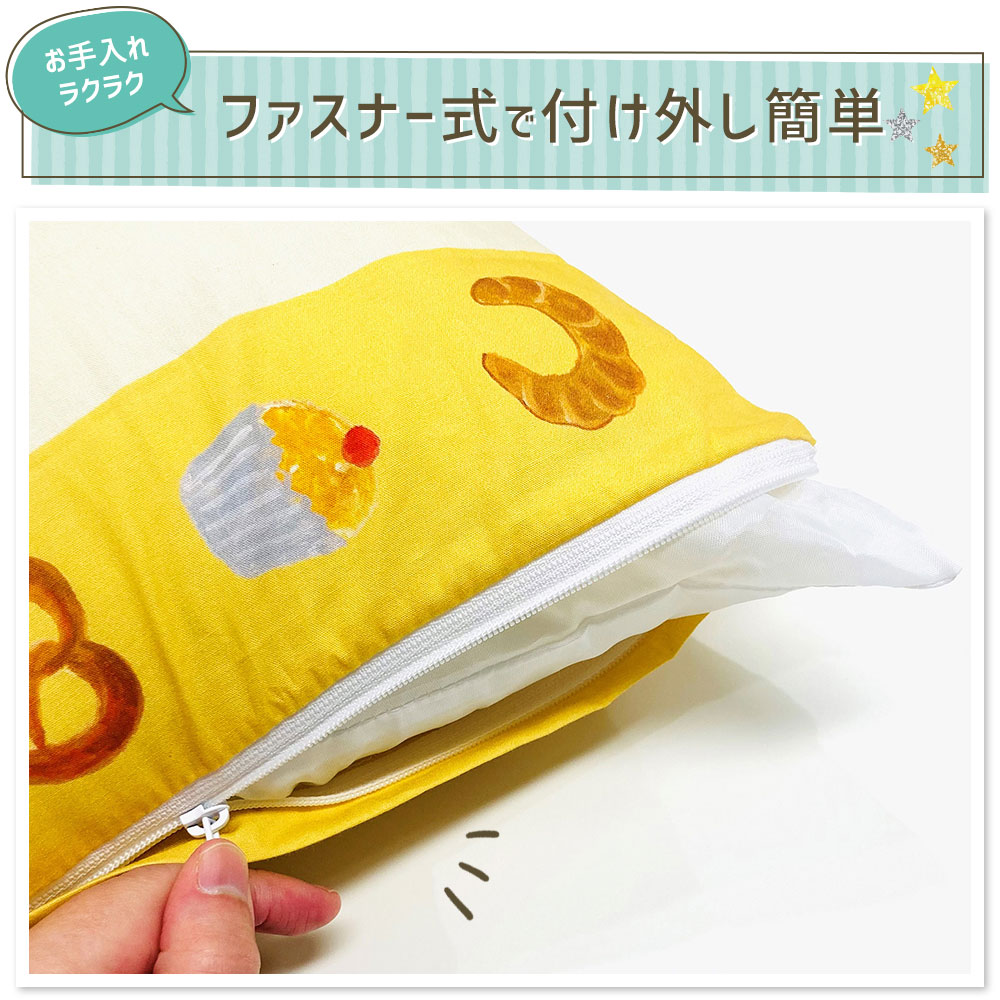 ファスナー式カバーなので、枕の出し入れが簡単!カバーは洗濯機で洗うことができます。お洗濯時のカバーの着脱をお子さんにお手伝いしてもらうのも良いですね。