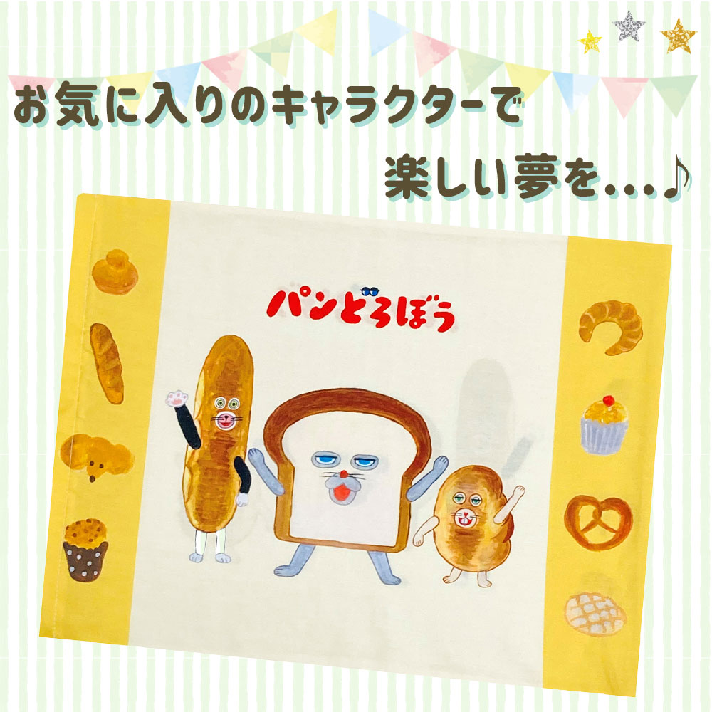 ※当ページでお求めいただけるのは「パンどろぼう」のカバー単品です。画像は他のキャラクターや枕本体も掲載しています。