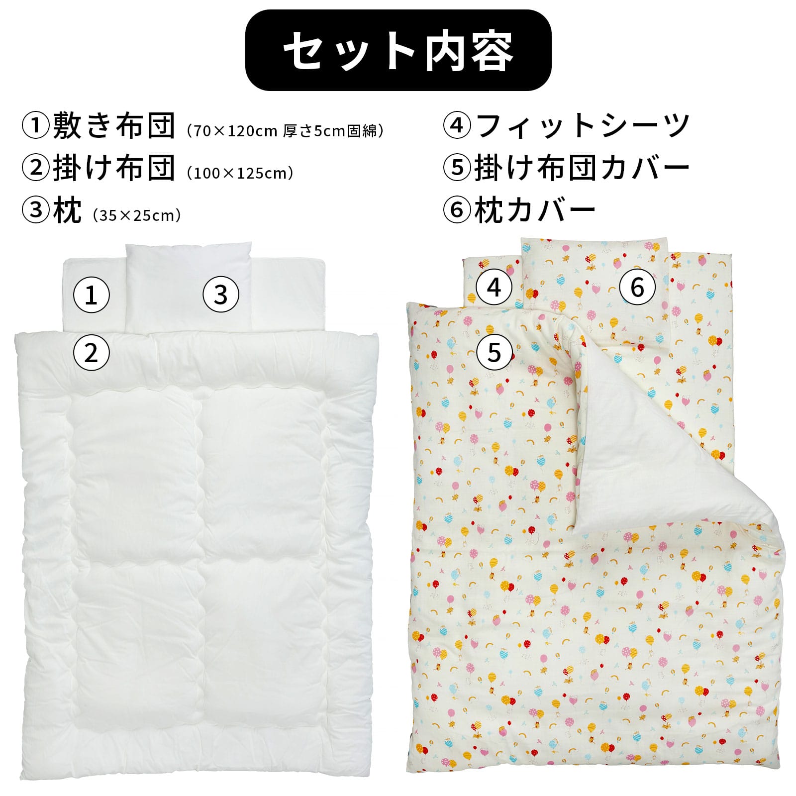 [掛け布団・枕]側生地:綿100%/中綿:ポリエステル100%(ウォッシュロン)