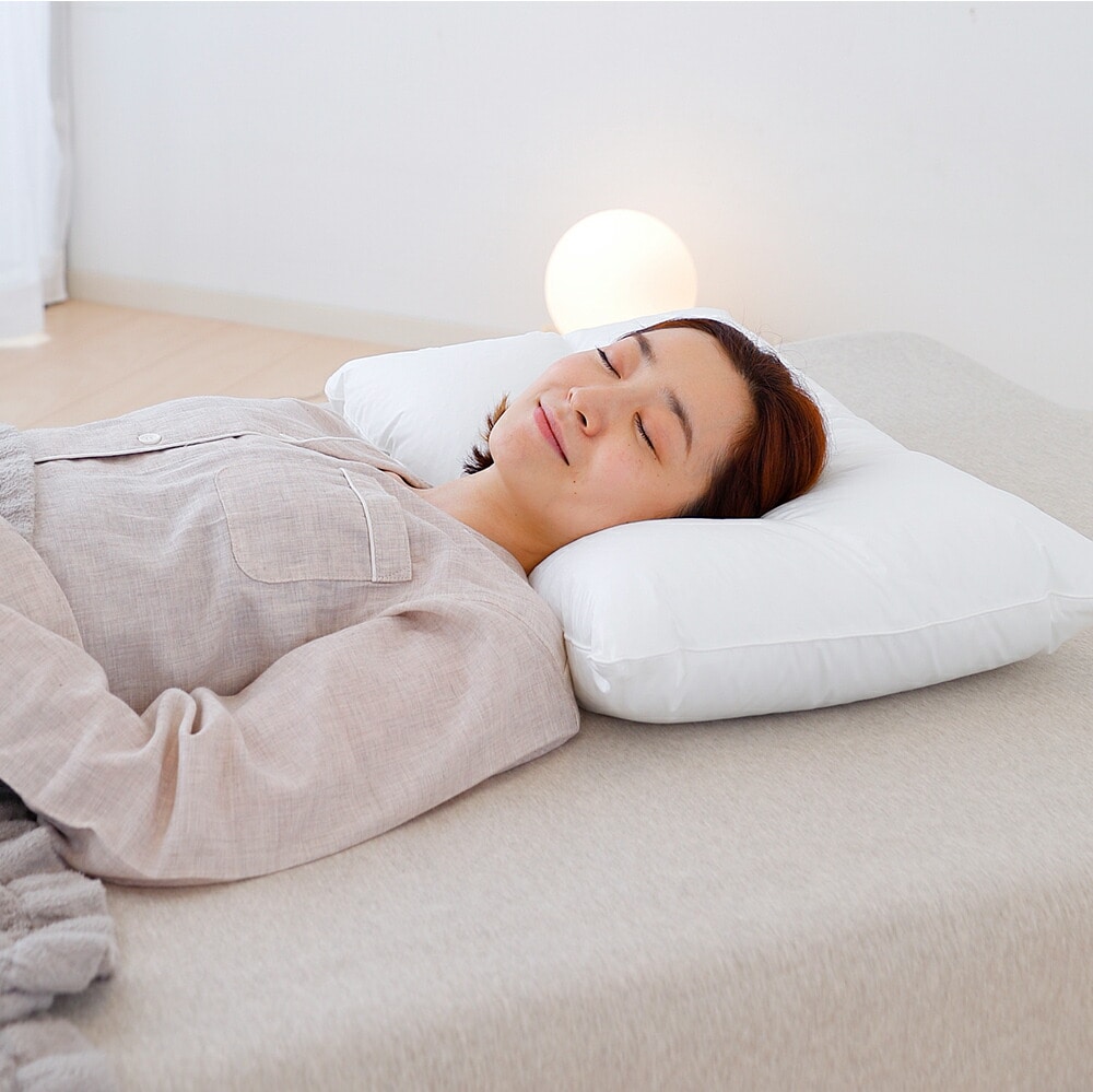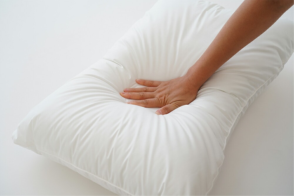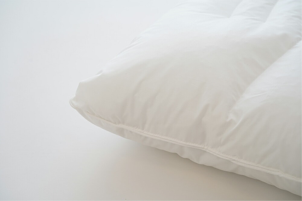 片面は、極細繊維の柔らかなマイクロファイバーわたと、ボリューム感と反発力を持つポリエステルわたをブレンドすることにより、しなやかな感触で優しく頭部を支えます。