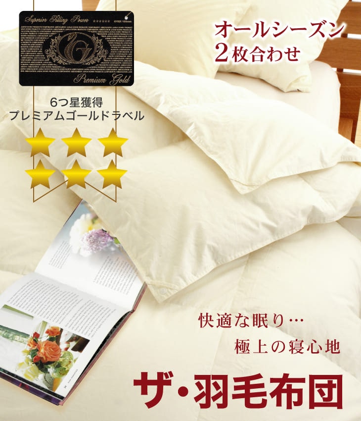 さらに、2枚合わせの羽毛布団にすることで、オールシーズンお使いただけ重宝します。