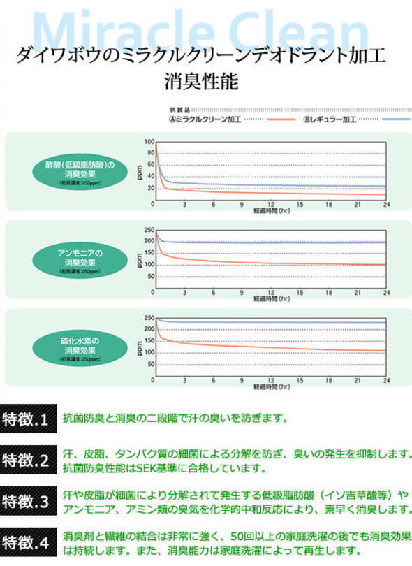 Mr.TEX(ミスターテックス)はダイワボウのミラクルクリーンデオドラント加工で汗臭、加齢臭、体臭の消臭効果!さらに、抗菌防臭SEK加工も実現したお父さんたちの強い味方です!!