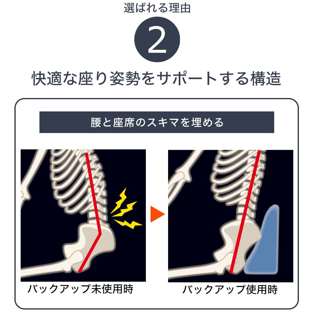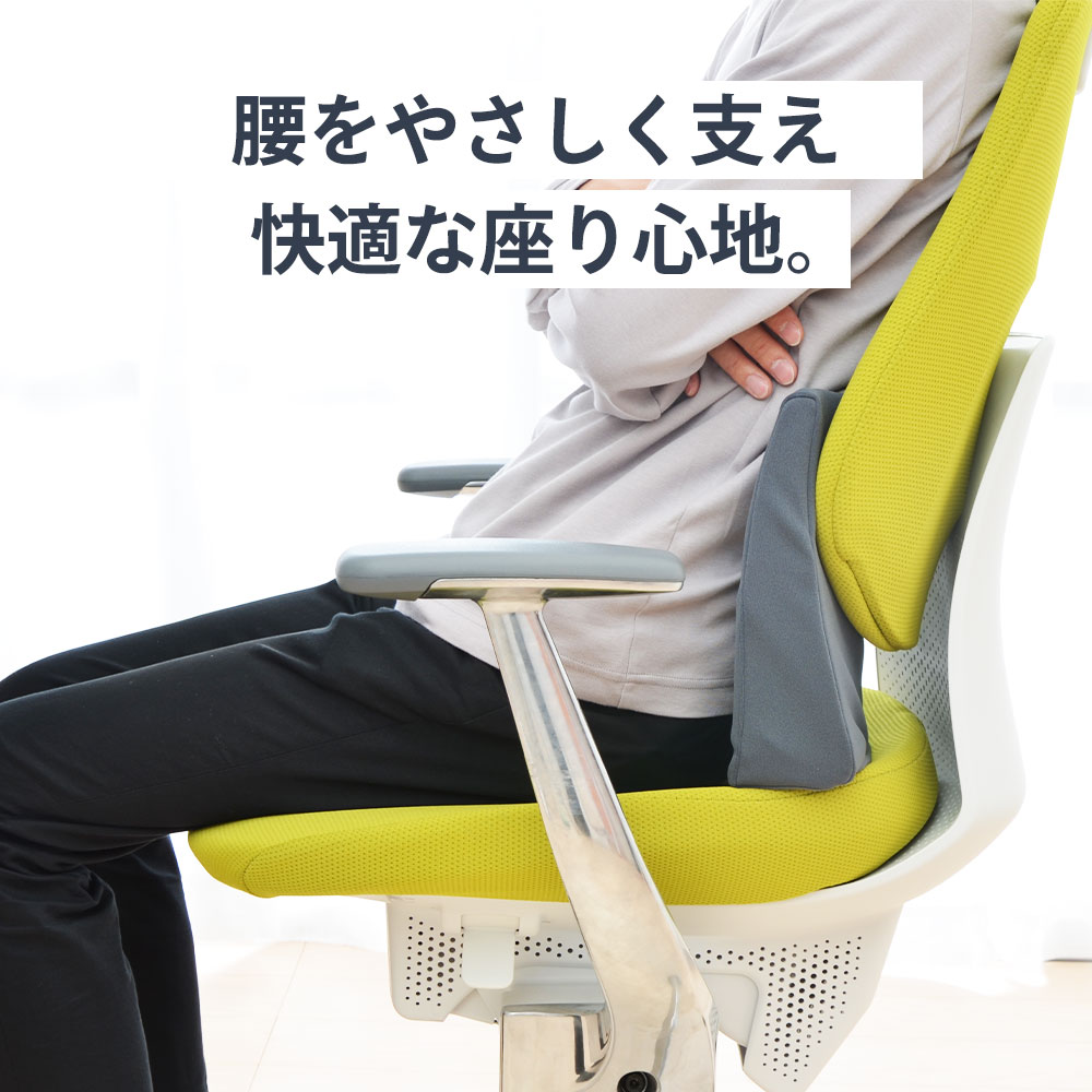 腰と座席とのスキマをやさしく埋めて、長時間座っても姿勢が保ちやすい設計に。