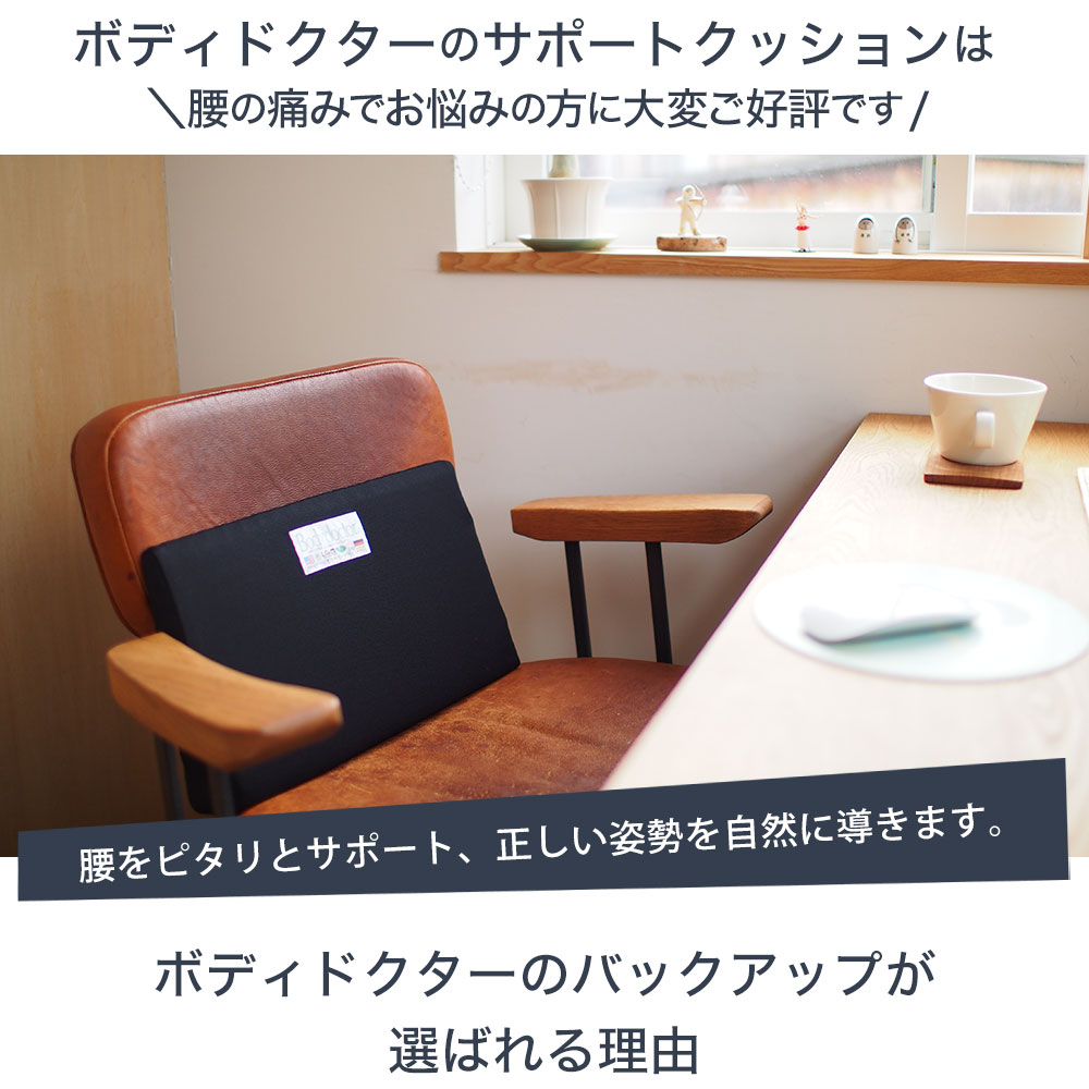 長時間座ることが多い、デスクワーク、テレワーク、趣味がドライブや旅行の方に、車椅子でのちょっとした使用に。 腰を優しく支えてくれる「ボディドクター® バックアップ」がおすすめです。