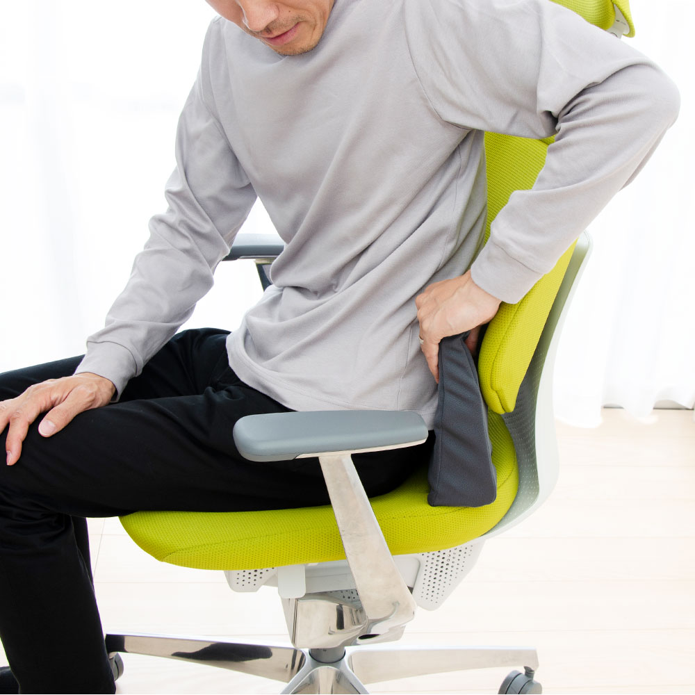 長時間同じ姿勢でいると、腰に負担を感じることがあります。ボディドクターバックアップは、腰を優しく支え、快適な座り心地をサポートします。