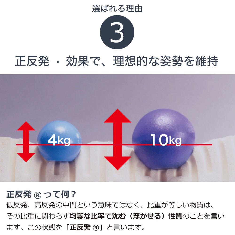 柔らかさと弾力性を両立した「正反発® ラテックスフォーム」が、腰まわりの負担軽減を助けます。