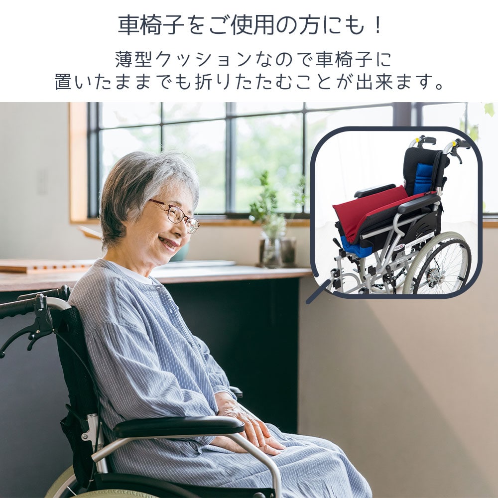 厚さ約2.5cmの薄型タイプのクッションで、さらに柔らかく弾力ある素材なので折りたたむことも可能です。