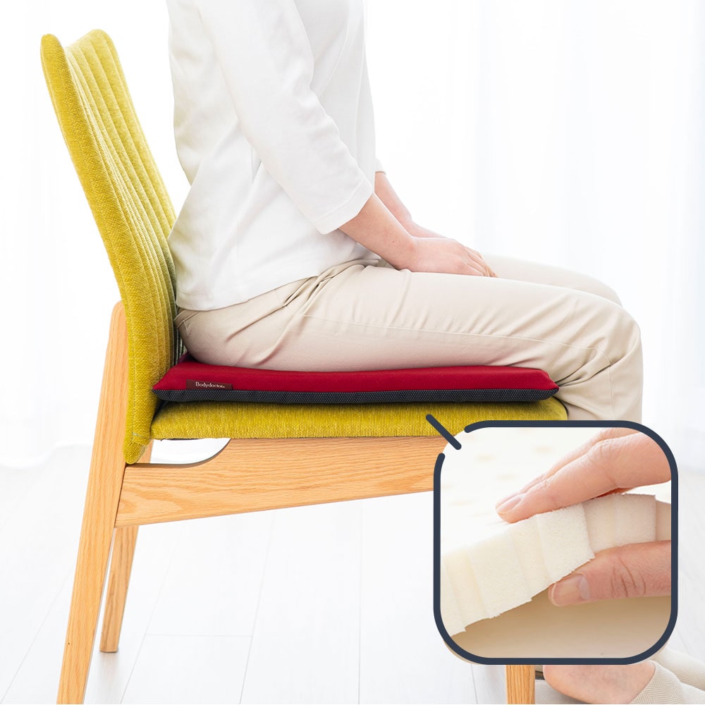 素材独特の弾力性「正反発®」効果により、薄くても底付き感のない、安定した座り心地のサポートクッションです。