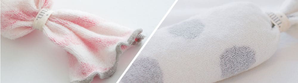 選べるデザインは「ドットピンク」、「ドットグレー」、「ボーダーピンク」、「ボーダーグレー」、「アイボリー」の5デザインからお選びいただけます。