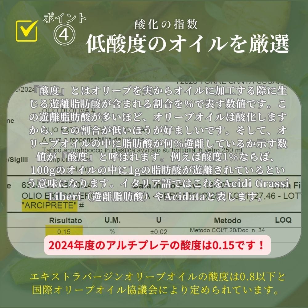 当店オリジナルBOX入り、オリーブオイルギフト 【商品の説明】 プーリア産の希少なカッサネーゼ種を100%使用したエキストラバージンオリーブオイルです。 【特徴】 マイルドで深みのあるとても希少な品種のオリーブオイルです。 【使い方】 そのままサラダやパン、お料理の仕上げにご使用ください。 【内容量】 500ml(458g) 【原材料】 オリーブ 【オリーブの品種】 カッサネーゼ種 【保存方法】 直射日光を避け常温にて保存してください。 【容器の形状】 遮光瓶 【原産国】 イタリア 【生産地】 プーリア 【受賞歴】 SOL、JOOP、SLOW FOODなど多数 【生産者】 スターシイ(STASI)はプーリア州のサレント半島(靴の形でいうかかとの辺りです)で親子4世代にわたってユニークで貴重なエクストラヴァージンオリーブオイルを作っています。 【ストーリー】19世紀の終わりに、アントニオ スターシイ氏が創業。オリーブの木を育て始め、2002年にスターシイ農園として生産から品質管理まで行う生産者に成長しました。その後、数々の受賞をくりかえし、様々な優秀なオリーブオイルを生産しています。