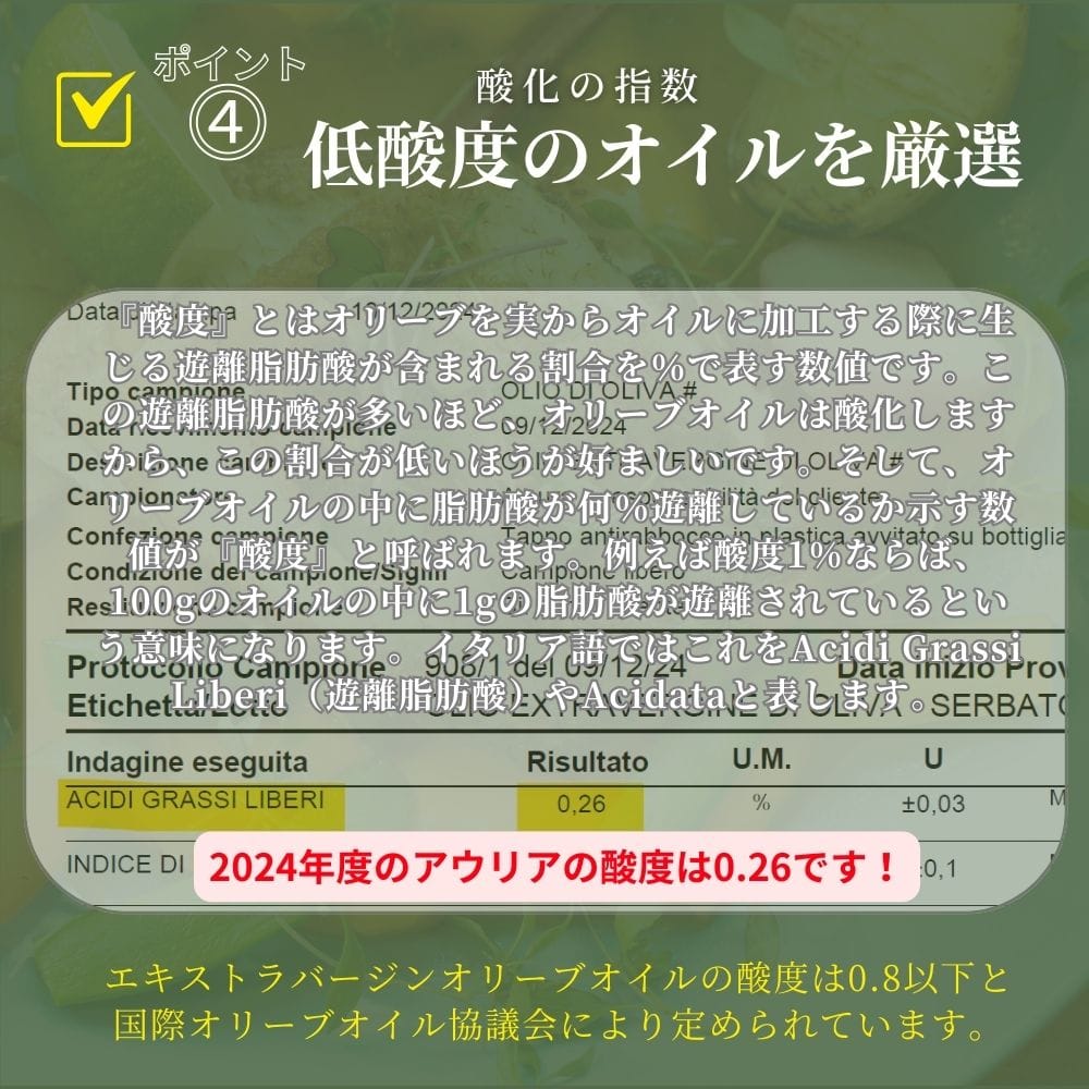 【商品説明】まろやかな味わいの普段使いにも適したエキストラバージンオリーブオイルです。 【特徴】 色は黄色味の強いゴールドで香りは熟れた果実やアーティチョークを彷彿させるようなライトフルーティに属するオイルです。 【使い方】 そのままサラダやパンにつけても美味しく、ソースやフライなどにも最適です。 【内容量】 1000ml(916g) 【原材料名】 食用オリーブ油 【オリーブの品種】 レッキーノ種、フラントイオ種、アリアローラ サレンティーナ種 【保存方法】 直射日光を避け常温にて保存してください。 【容器の形状】 遮光瓶 【原産国】 イタリア 【生産地】 プーリア 【受賞歴】 2018年JOOPブレンド部門銅賞 【生産者】 スターシイ(STASI)はプーリア州のサレント半島(靴の形でいうかかとの辺りです)で親子4世代にわたってユニークで貴重なエクストラヴァージンオリーブオイルを作っています。 【ストーリー】 19世紀の終わりに、アントニオ スターシイ氏が創業。オリーブの木を育て始め、2002年にスターシイ農園として生産から品質管理まで行う生産者に成長しました。その後、数々の受賞をくりかえし、様々な優秀なオリーブオイルを生産しています。
