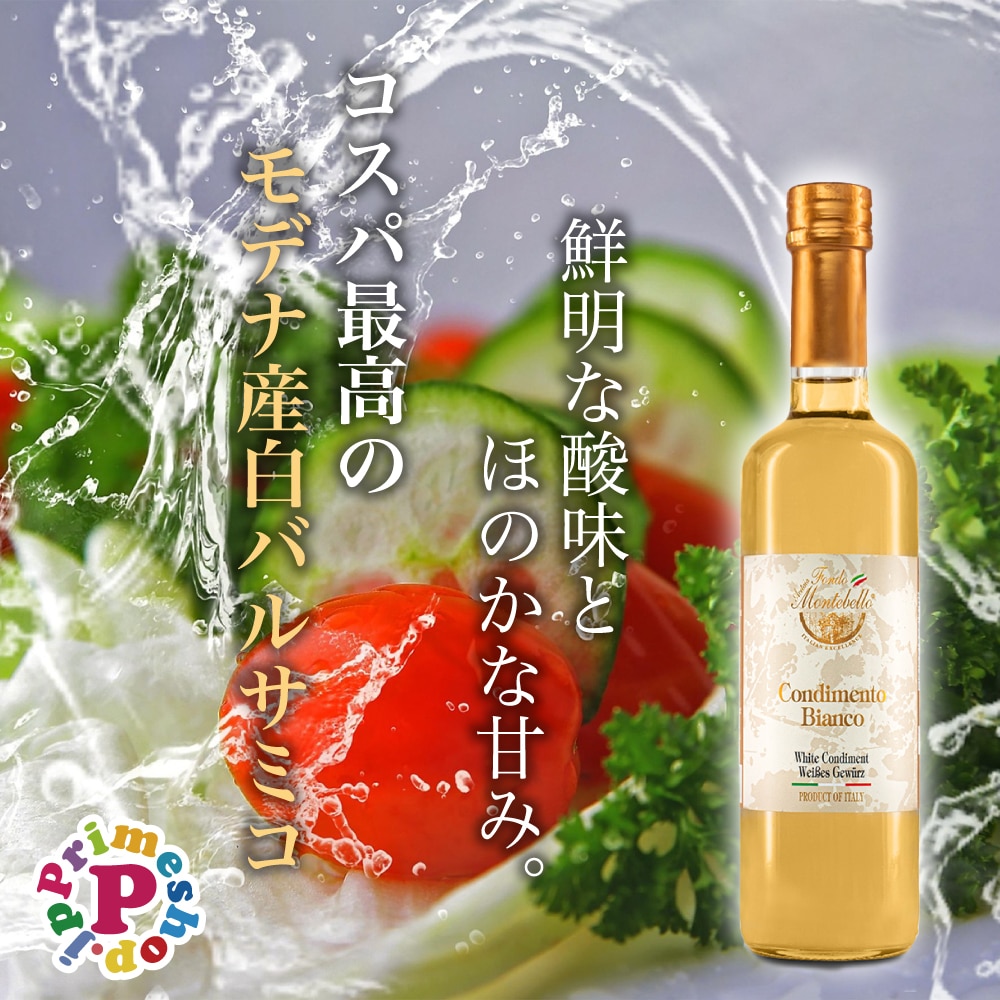 コスパに優れた人気の白バルサミコ(white condiment)です。 色をつけずに味付けができるので、とても便利です。 スッキリとした甘みがあり酸味も程よくあり、オススメです。砂糖不使用です。 サラダのドレッシングの代わりとしてもご使用いただけると思います。 名称:果実酢 原材料名:ワインビネガー、濃縮ぶどう果汁 内容量:500ml 酸度:4.5% 原産国名:イタリア 保存方法:直射日光・高温多湿な場所を避けて保存して下さい