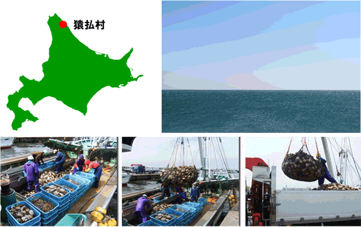 稚貝を撒いてから4年が経過した海区で漁獲され、宗谷漁港・猿払漁港に水揚げされたホタテ貝