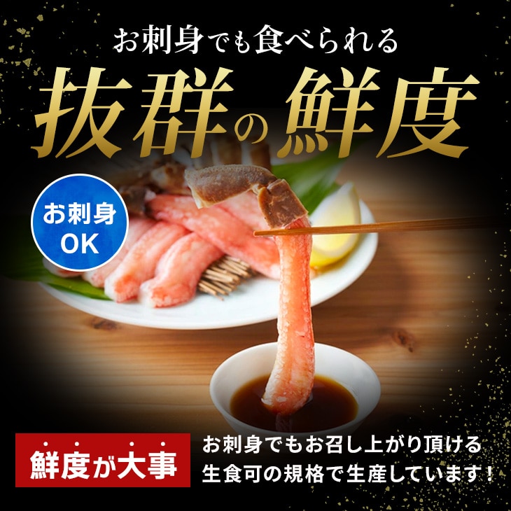 蟹はもともと水分が多い特性上、解凍後にNET重量から10%前後目減りすることがあります。予めご了承下さいますようお願い申し上げます。