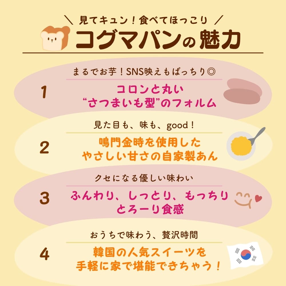 | 原材料 | 小麦粉・和芋クリーム・ヨーグルト種・上白糖・ショートニング・紫芋パウダー・脱脂粉乳・イースト・塩・酵素(一部に小麦・乳成分を含む) |