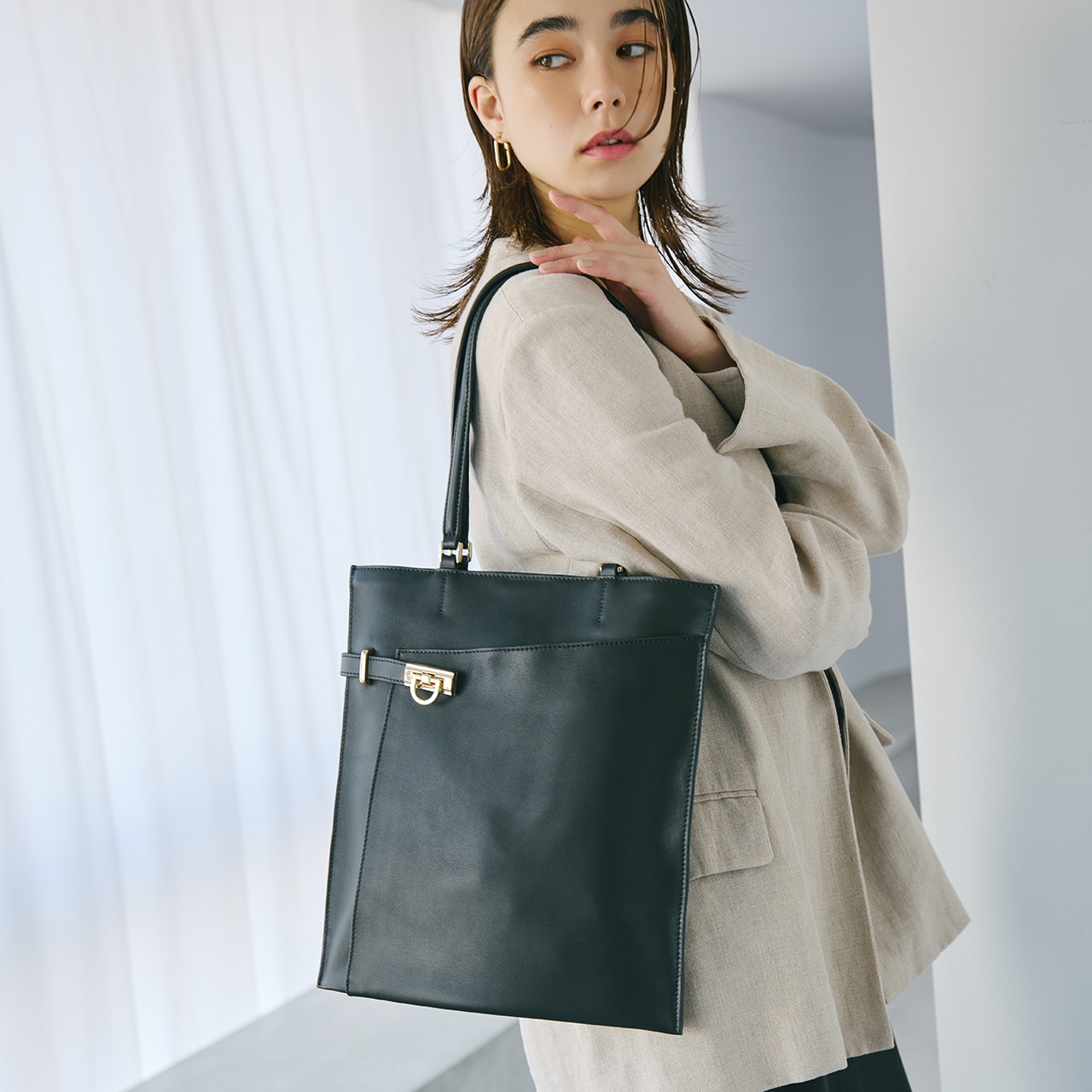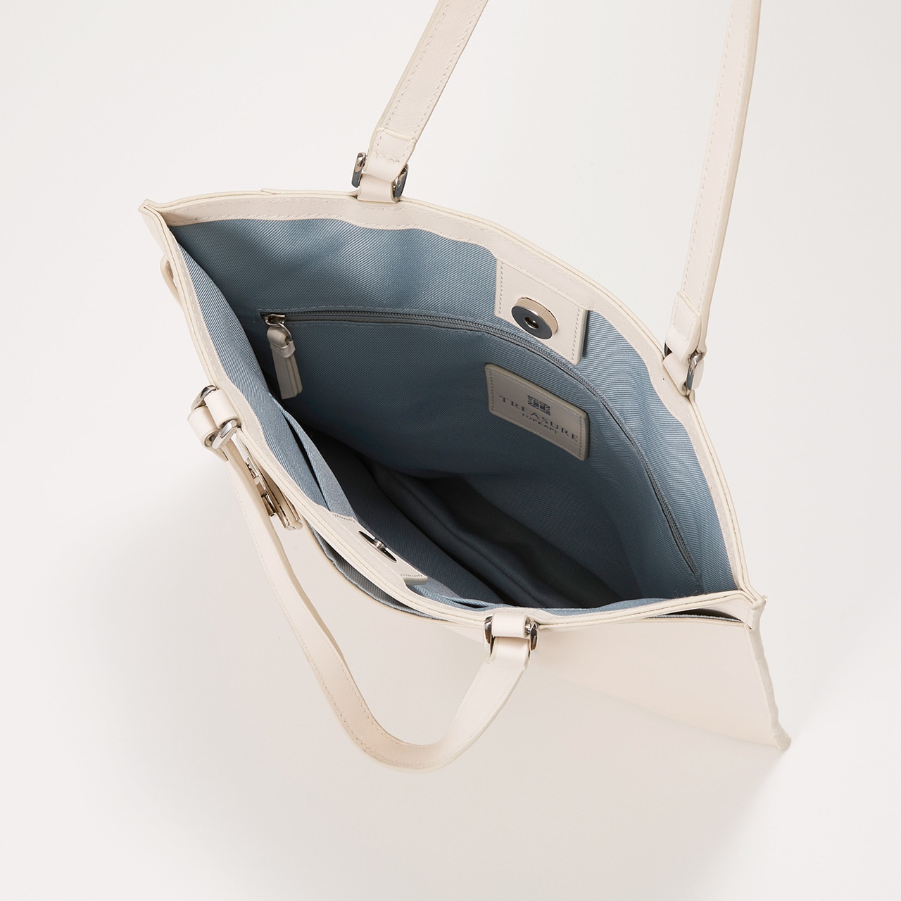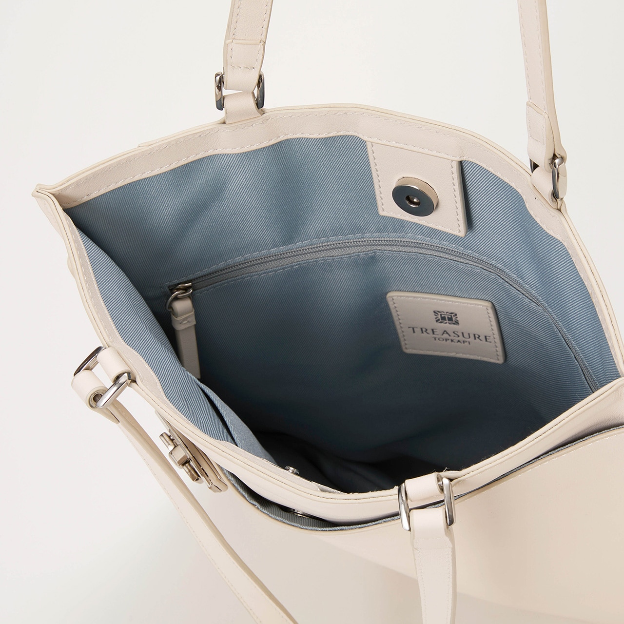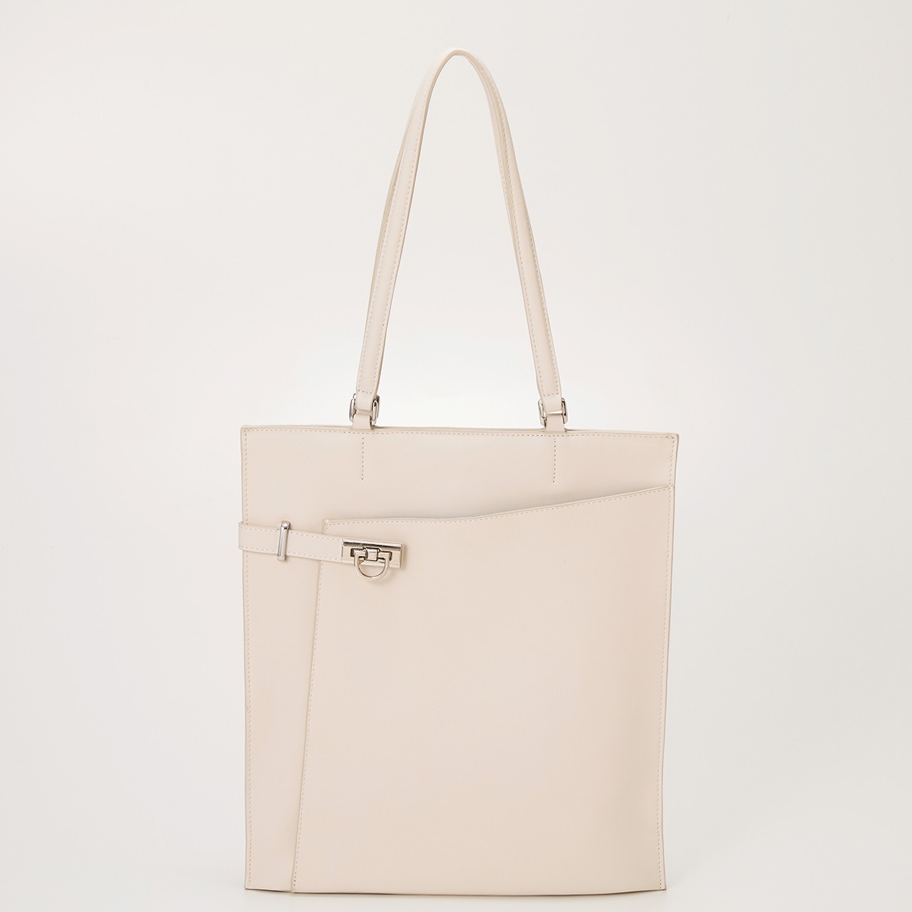 リッチ&クールな表情のレザートートバッグ。 洗練されたスムースレザーの風合いに、ベルト使いと金具がアクセント。 薄マチですっきりとしていながらも、入れる荷物によって底が広がる仕様。 A4サイズ対応で書類やタブレットなどを収納でき、内装にはファスナーポケットとオープンポケット付き。 フロント部分にもポケットがあり、小物を整理できます。 背側のファスナーポケットは、スマートフォンやパスケースなどさっと取り出したいアイテムの収納に便利です。 オンオフ、シーズン問わずお使いいただけるブラックとホワイトの2色をラインナップしています。 【TREASURE TOPKAPI / トレジャー トプカピ】Sense is a treasure ーその "感性"が宝物ー 大人の女性の気分を上げる、品が良く楽しいバッグブランドです。 Unique senseをコンセプトに、 TREASUREは "独創的" で心くすぐるアイテムを提供します。 ※商品画像はサンプルのため、色味やサイズ、仕様等に変更が生じる場合がございますので、予めご了承ください。