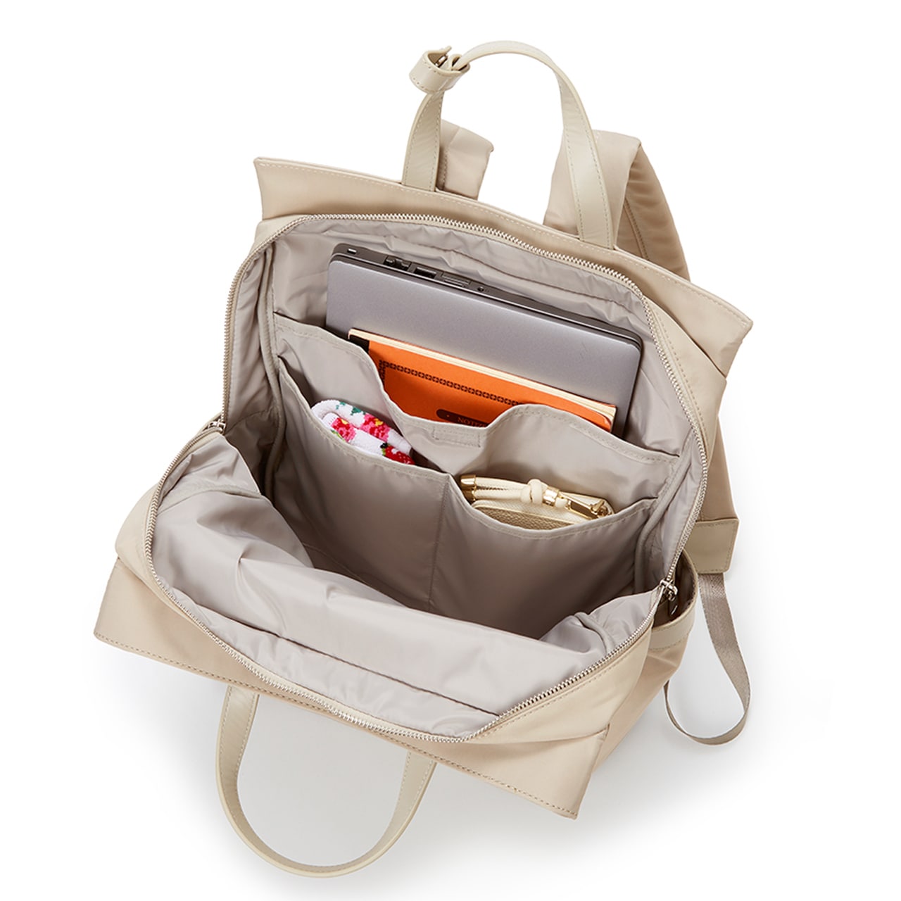 《実用的かつ都会的》防水加工を施したナイロンにレザーのコンビネーションを効かせ、リッチに仕上げたバックパックが登場。スクエア型のフォルムは、ビジネスシーンにもマッチするスマートなムードが魅力です。ノートパソコン(14インチ)やタブレット(12.9インチ)、折り畳み傘やドリンクボトル、迷子になりがちな小物類…それぞれの収納を想定したポケットを設計。取り出し時のストレスを減らす、細やかな仕分けを叶えます。荷物が重いときにもショルダーベルトや背面のクッションが身体に優しくフィット。ハンドル付きなので、電車の中など混み合う場所ではトートのように持ち替えOKです。さらに、ショルダーベルトは長さを短くしても端が垂れ下がらないすっきりとした仕様に。使うシーンをとことん考え抜き、機能美が光る大人のバックパックが完成しました。※商品画像はサンプルのため、色味やサイズ、仕様等に変更が生じる場合がございますので、予めご了承ください。
