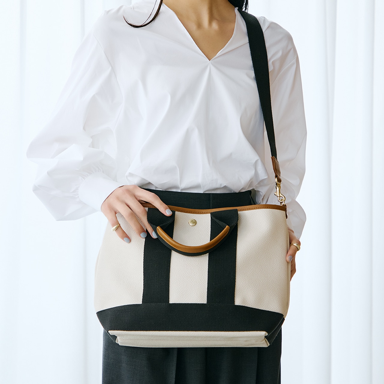 人気のスコッチグレインシリーズとトレンド感のある太めのショルダーベルトがセットになった、うれしい2wayトートバッグ。お客様のご要望にお応えし、誕生しました。Mサイズは、B5がストレスなく収まり、ショルダーとして持った時もバランスよく決まる程よいサイジング。オンオフ問わず重宝しそうな使い勝手の良さが魅力。スナップで着脱可能なファスナーポーチが付属し、貴重品を入れるときも安心です。
