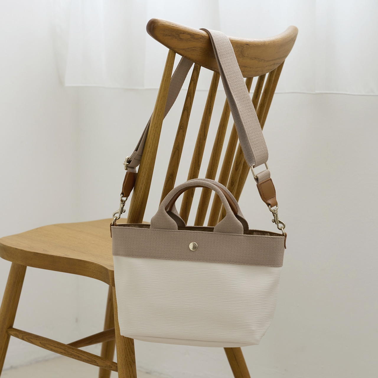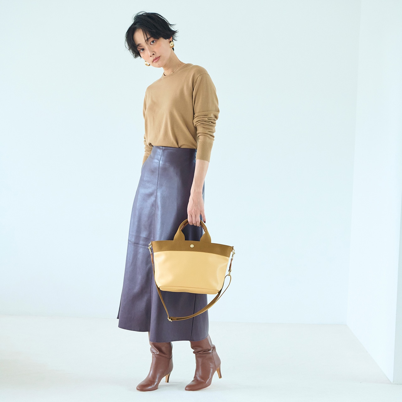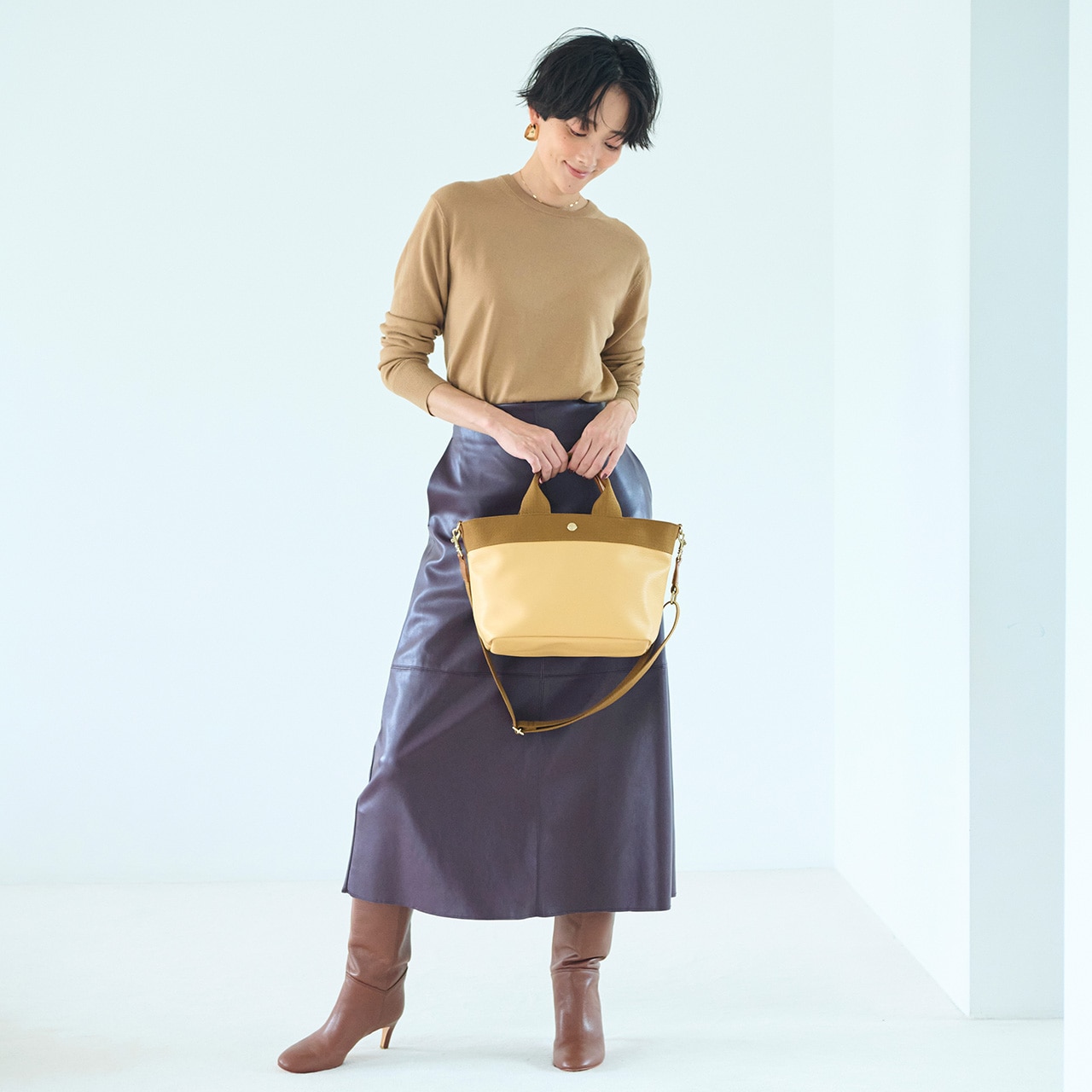 《どんなスタイルにも寄り添う、理想的な定番バッグ》人気シリーズ・RIPPLEのトートバッグにショルダーベルトが付き、さらに便利にアップデート!上品で削ぎ落とされたデザインの中にも、動きのある繊細な型押し生地とトレンド感のある太ベルトがスタイリッシュなアクセントに。レザーのコンビネーションを効かせたハンドルはあえて短めに設計し、アクティブすぎない都会的なバランスを実現します。天面はファスナー仕様で肩掛け時にも安心。コンパクトなサイジングながらたっぷりとしたマチが見た目以上の収納力を発揮し、きっとどこへ行くにも手放せなくなるはず。リプル…弾力と適度な硬さを備える発砲PVCにさざ波のような型押しを施した、クールな表情が人気のシリーズ。傷や汚れが目立ちにくく軽量で、デイリーユースに最適。国内の工場で丁寧に作られています。