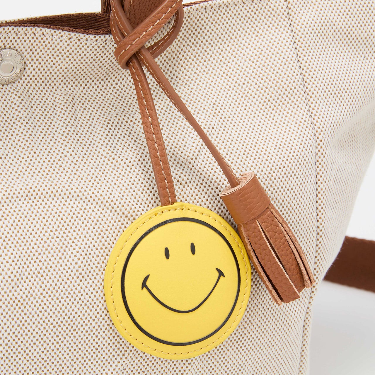フロントにあしらったスマイルのエンボスはさりげない愛らしさ漂わせ、カラーを効かせたモチーフ付きのタッセルレザーチャームが目を惹くアクセントに。