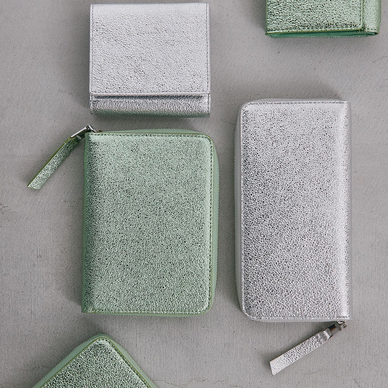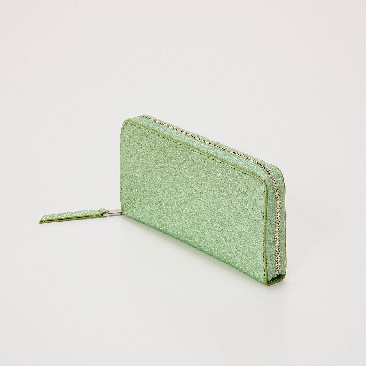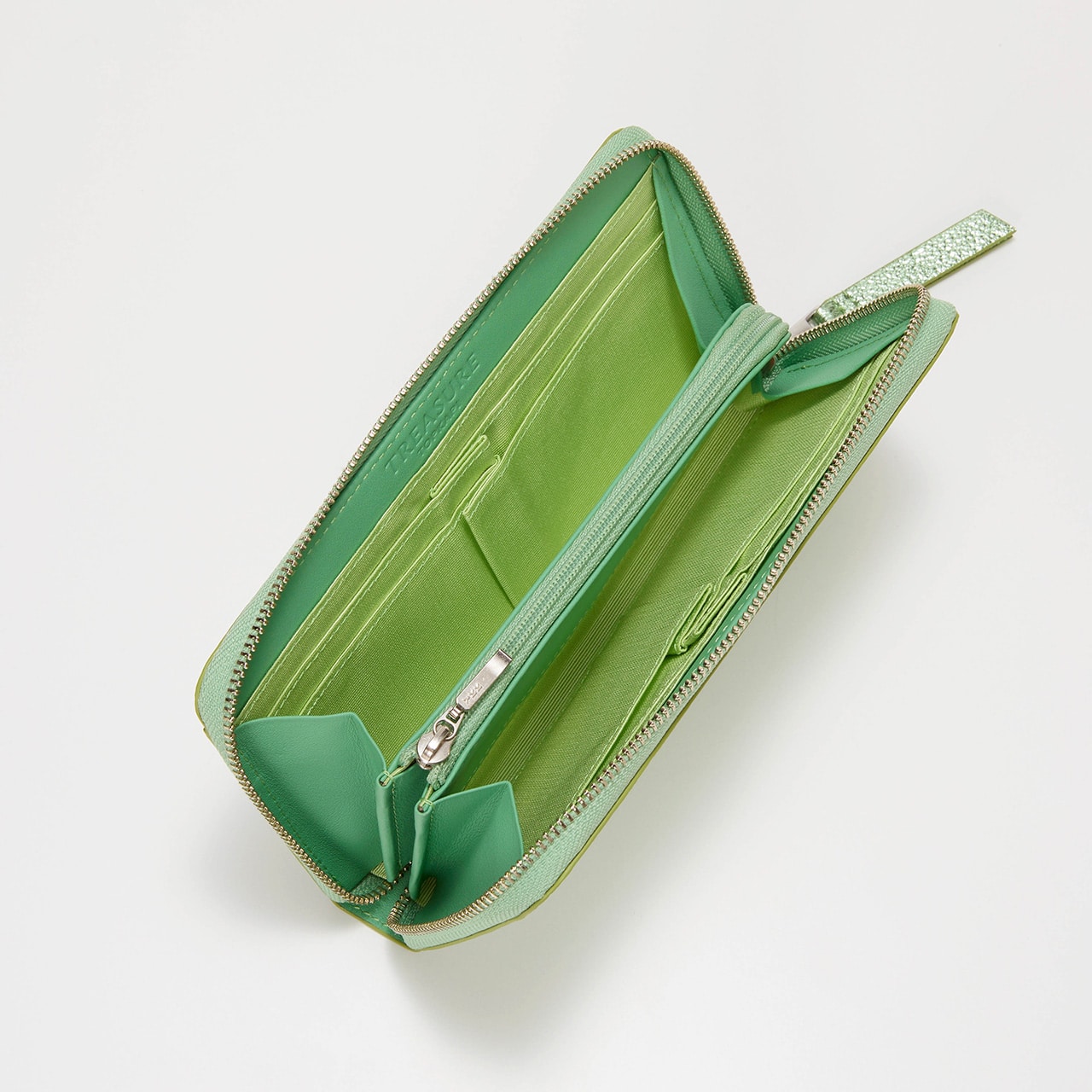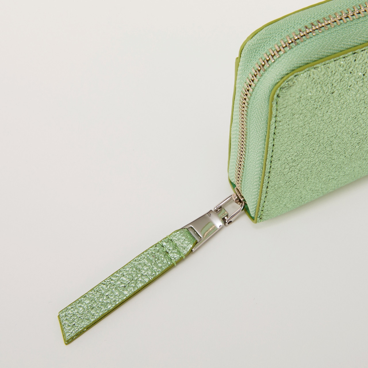 個性がキラリときらめく長財布。クラッキング加工を施したレザーに箔加工を施し、メタリックカラーながらも上品な雰囲気に仕上げました。口が大きく開くラウンドファスナータイプで、中央にはファスナータイプのコインポケット、両サイドにはマチ付きのカードポケットが充実。小銭やカードの出し入れがしやすく、紙幣や領収書などを分けて収納できるので使い勝手抜群です。手に取るたびに心が華やぐ、シルバーとグリーンの2色をラインナップしています。【TREASURE TOPKAPI / トレジャー トプカピ】Sense is a treasure ーその "感性"が宝物ー大人の女性の気分を上げる、品が良く楽しいバッグブランドです。Unique senseをコンセプトに、 TREASUREは "独創的" で心くすぐるアイテムを提供します。※商品画像はサンプルのため、色味やサイズ、仕様等に変更が生じる場合がございますので、予めご了承ください。