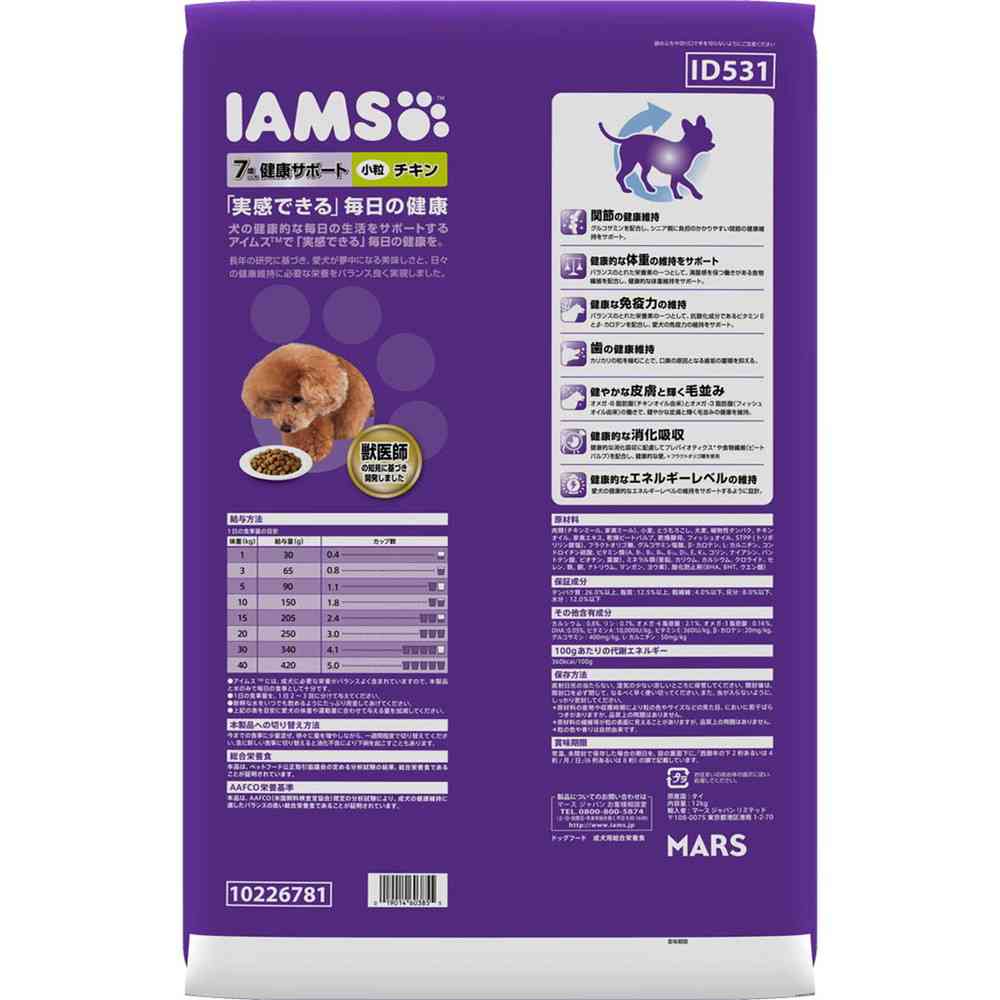7歳以上の全てのシニア犬の健康な生活のために最適な製品設計。 ワンちゃんが大好きなチキンを使用。