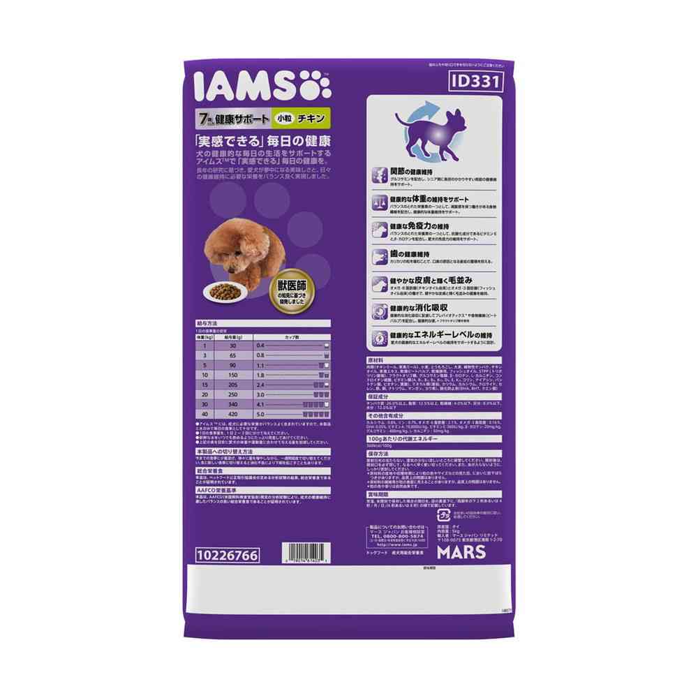 7歳以上の全てのシニア犬の健康な生活のために最適な製品設計。 ワンちゃんが大好きなチキンを使用。