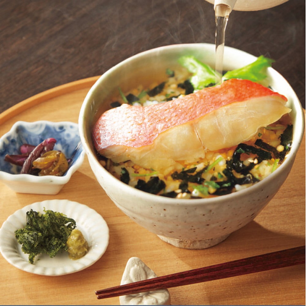 ●お茶漬け(金目鯛・穴子・鮭・鯛・帆立)各1、だしつゆ×5、具材×5