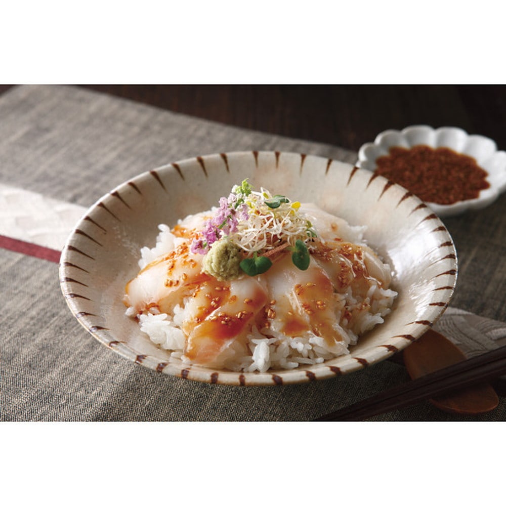 ●天然真鯛切身50g×4、丼たれ35ml×4、わさび2.5g×4、ごま20g