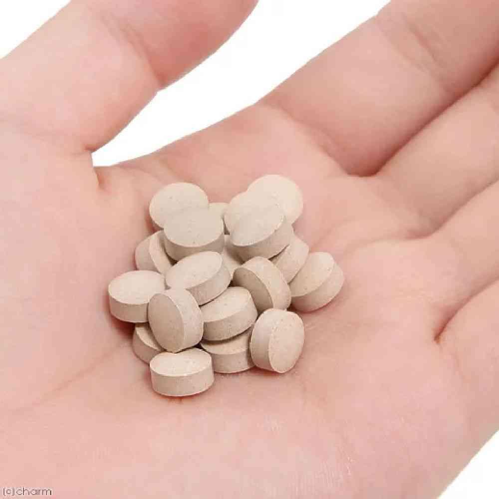 【原材料名】ビール酵母、米胚芽・大豆醗酵抽出物、豚レバーエキス、還元麦芽糖水飴、N-アセチルグルコサミン、有胞子性乳酸菌、ビフィズス菌粉末、穀物醗酵エキス末(穀物醗酵エキス、マルトデキストリン)、キウイフルーツエキス末、チキンエキス末、ポークエキス末、乳酸菌(フェカリス菌)、セルロース、ショ糖脂肪酸エステル、ユッカ抽出物、微粒二酸化ケイ素、ラクトフェリン濃縮物 【栄養成分表示】代謝エネルギー0.82kcal、たんぱく質19.2%以上、脂質3.8%以上、粗繊維2.1%以下、灰分5.4%以下、水分7.7%以下、ナトリウム0.22mg、米胚芽・大豆醗酵抽出物30mg、N-アセチルグルコサミン10mg、キウイフルーツエキス末5mg、穀物醗酵エキス末5mg、ユッカ抽出物5mg、ラクトフェリン1mg、フェカリス菌(EC-12株)50億個、ビフィズス菌5億個、有胞子性乳酸菌5000万個