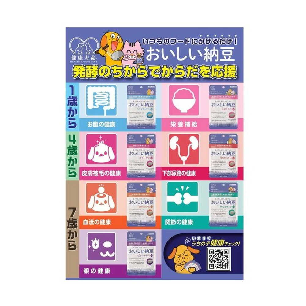 ●納豆固有のナットウキナーゼ、イソフラボン、レシチン等が含まれています。 ●脳や血液の健康を維持する事により、ハツラツとした生活や記憶力の保持に役立つことが知られています。 ●着色料・発色剤・酸化防止剤・保存料、不使用