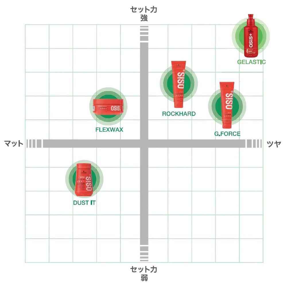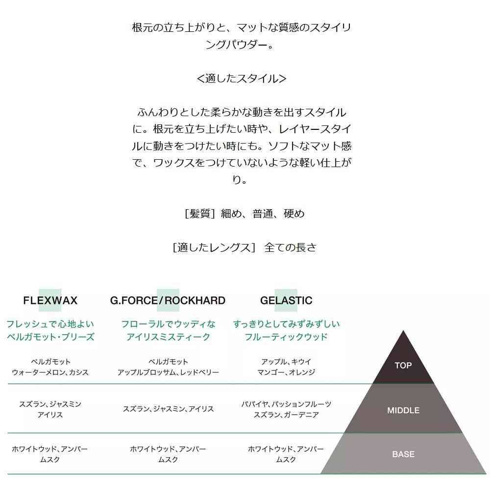 岩のようにガチガチに固まるグルーワックス。 適したスタイル 大胆な束感や躍動感のあるスタイル、ボリュームを出したいスタイルに。ワックスなのに時間が経ってもスタイルをしっかりロック。 髪質:普通、硬め、太め 適したレングス:ショート~ミディアム