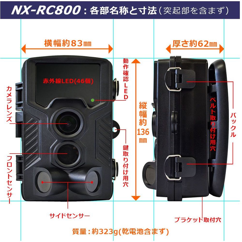 ●すぐに使える監視カメラです。●配線不要で簡単に設置できます。●Full HDを超える800万画素の高画質モデルがこの価格です。●防塵防水仕様なので屋外でも使えます。●防犯、監視、観察など、様々な用途や所で使用可能な監視カメラです。●赤外線温度変化を検出した時だけ撮影できるPIRセンサーを搭載。●センサーとは関係無く、予め設定した間隔で撮影できるライムラプス機能も搭載。●40個の赤外線LEDを搭載。屋内、屋外を問わず、夜間の撮影で効果を発揮します。●幅(mm):83●奥行(mm):62●高さ(mm):136●最大画素数(万):800●色:ブラック●電源:単三アルカリ乾電池8本。または4本。(別売)●解像度:(写真)20MP/16MP/12MP/8MP/5MP/3MP/1MP、(ビデオ)3840×2160P、2688×1520P:20FPS、1920×1080P/1280×720P、1280×720P:60FPS、848×480P/720×480P、640×480P/320×240P●電源(V):単三アルカリ乾電池8本。または4本。(別売) 質量323g