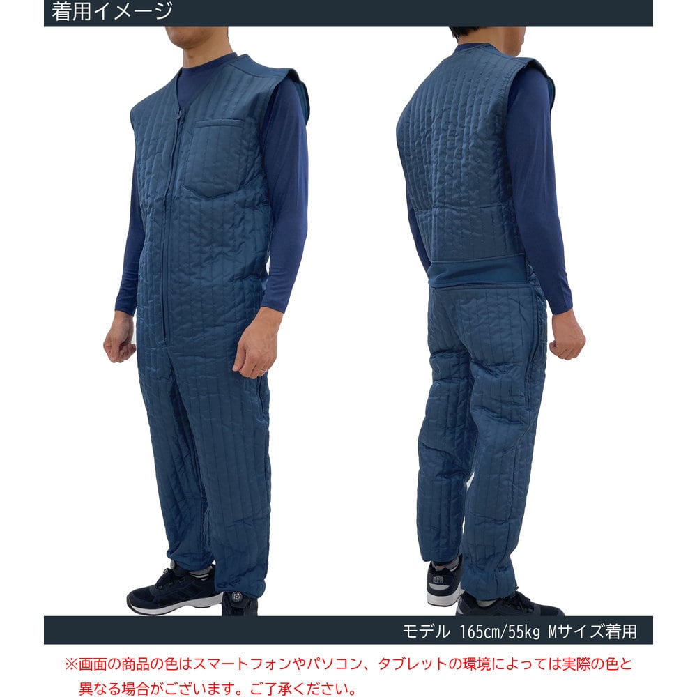 ●軽量で保温性の高い中綿キルティング生地を使用しています。●インナーとして着用することで、体を暖かく保ちます。●色:ネイビー●サイズ:L●身長(cm):175~185●胸囲(cm):108●肩幅(cm):45●適合胸囲(cm):96~104●胴周り(cm):100●着丈(cm):154●リブ分以外は総キルト仕様●腰部が2本のファスナーで大きく開くL字開閉 質量400g