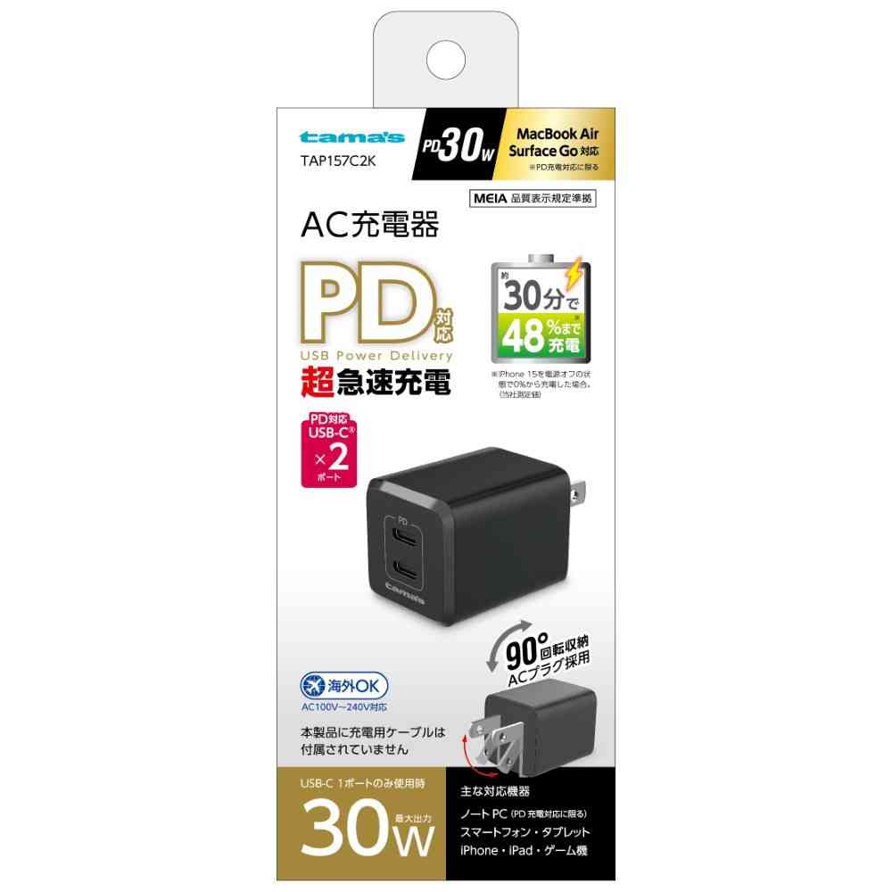 ●USB PD搭載でUSB-Cスマホの 「超急速充電」 対応 ●PD30W出力で「MacBook Air」の充電に対応 ※USB-C単ポート接続時 ●USB-C2ポート搭載でスマートフォンの2台同時充電に対応 ●90度可動収納式プラグ採用