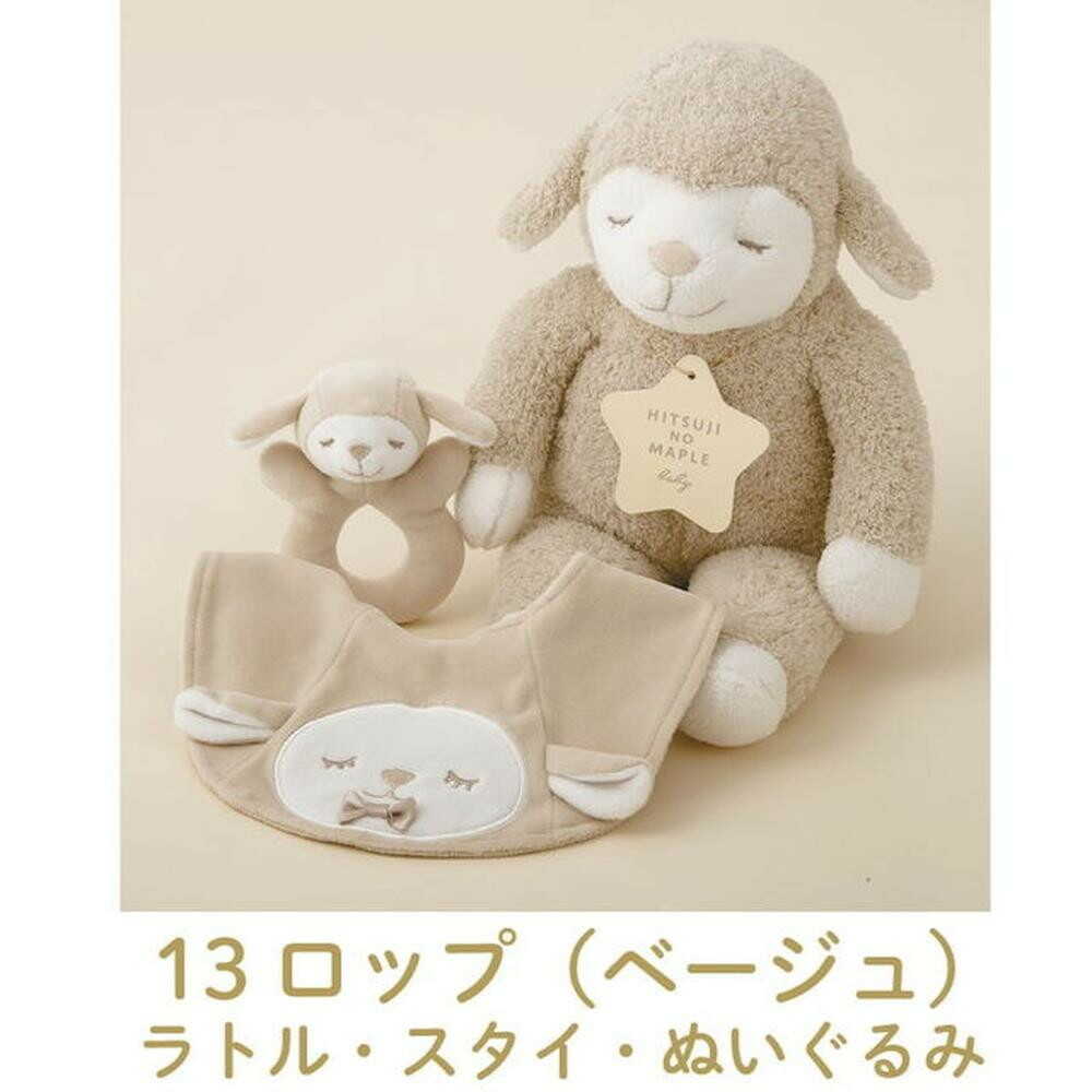 《ひつじのメイプル》シリーズより初のベビー用品が登場しました。 小さくてやわらかい赤ちゃんにも寄り添えるベビーメイプル。 出産やハーフバースデイ、1歳のお誕生日のお祝いなどにギフトセットがおススメです。 【セット内容】 ・ラトル ・スタイ(リバーシブル) ・ぬいぐるみ ・専用ボックス付き