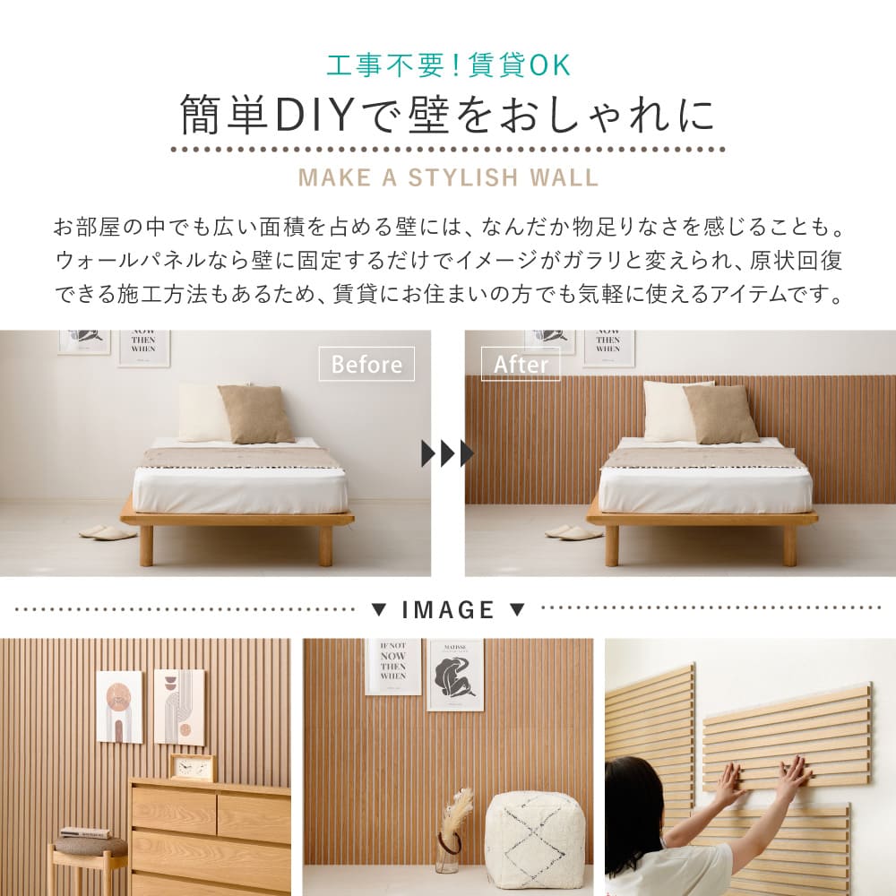 工事不要・簡単施工でお部屋の壁をおしゃれにできる吸音パネル IPANELLA(イパネッラ)。裏面の吸音材が気になる生活音を吸音してくれるので、話し声やペットの鳴き声、テレビ・オーディオの音量など家庭内での気になる『音』の対策に。おしゃれな木目でお部屋のイメージをガラリと変えられ、壁を原状回復できる施工方法もあるため、賃貸にお住まいの方でも気軽にお使いいただけます。