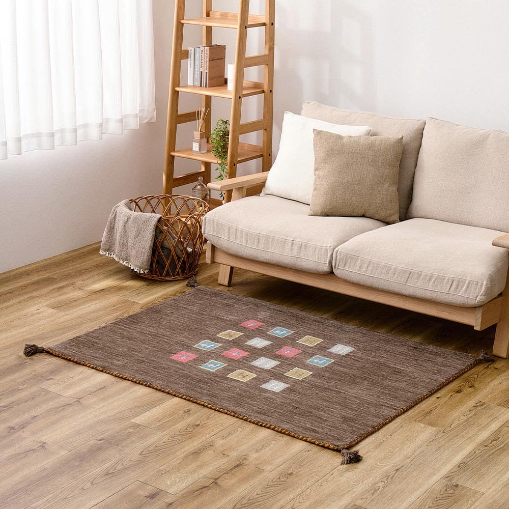 自然のぬくもりを感じさせる落ち着いた色合いが魅力のギャッベ「TXシリーズ」。 モダンにもナチュラルにも心地よく馴染み、お部屋に穏やかな雰囲気をもたらします。 たっぷりの天然ウールを織り込み、ふんわりとした足ざわりと優れた弾力性を両立。夏はさらりと涼しく、冬はあたたかく、一年中心地よくお使いいただけます。また、ウールには水をはじきやすい性質もあり、汚れに強いのも特長。ホットカーペットや床暖房にも対応し、通年使いやすい一枚です。