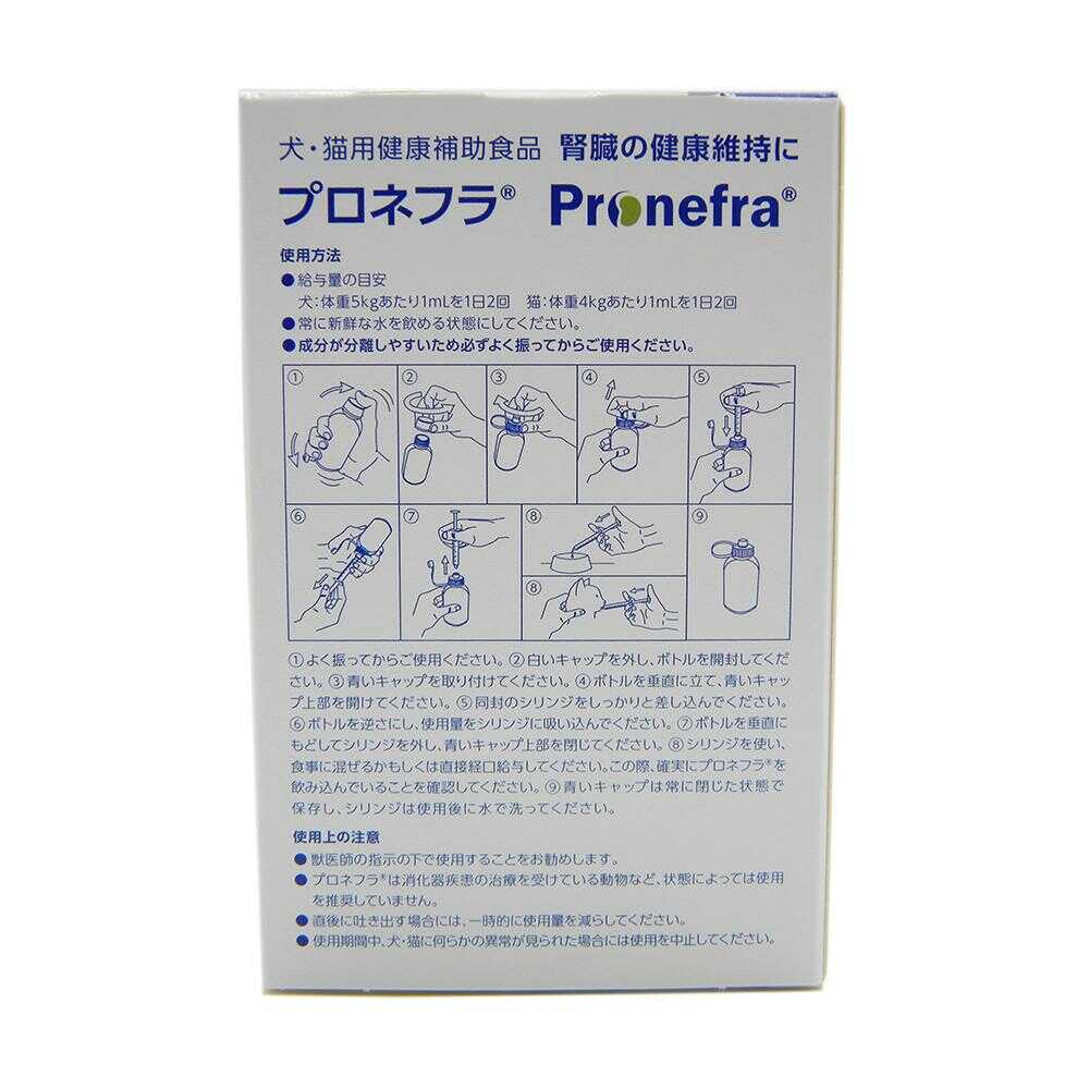 獣医師の指示の下で使用することをお勧めします。 プロネフラは消化器疾患の治療を受けている動物など、状態によっては使用を推奨していません。 直後に吐き出す場合には、一時的に使用量を減らしてください。 使用期間中、犬・猫に何らかの異常が見られた場合には使用を中止して下さい。