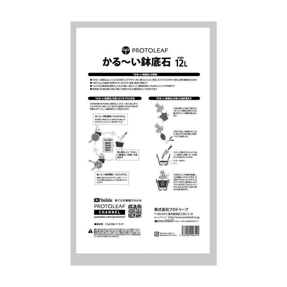 使った後は土の改良材に 【特徴】 ・天然素材を1,000℃以上で燃やし発泡させた、無菌・無臭の素材です ・通常のパーライトよりくずれにくいため、繰り返しの使用が可能です ・使った後はくずして使えば、土壌改良剤になり、最後まで有効活用できます。 ・鉢底からナメクジが入りにくい効果があります。 ・鉢の中の通気性・排水性がアップし、根腐れを防止します。 ・こくよう石は真珠岩を原料としたものと違い、崩れにくく、長期間使用しても劣化しにくいのが特徴です